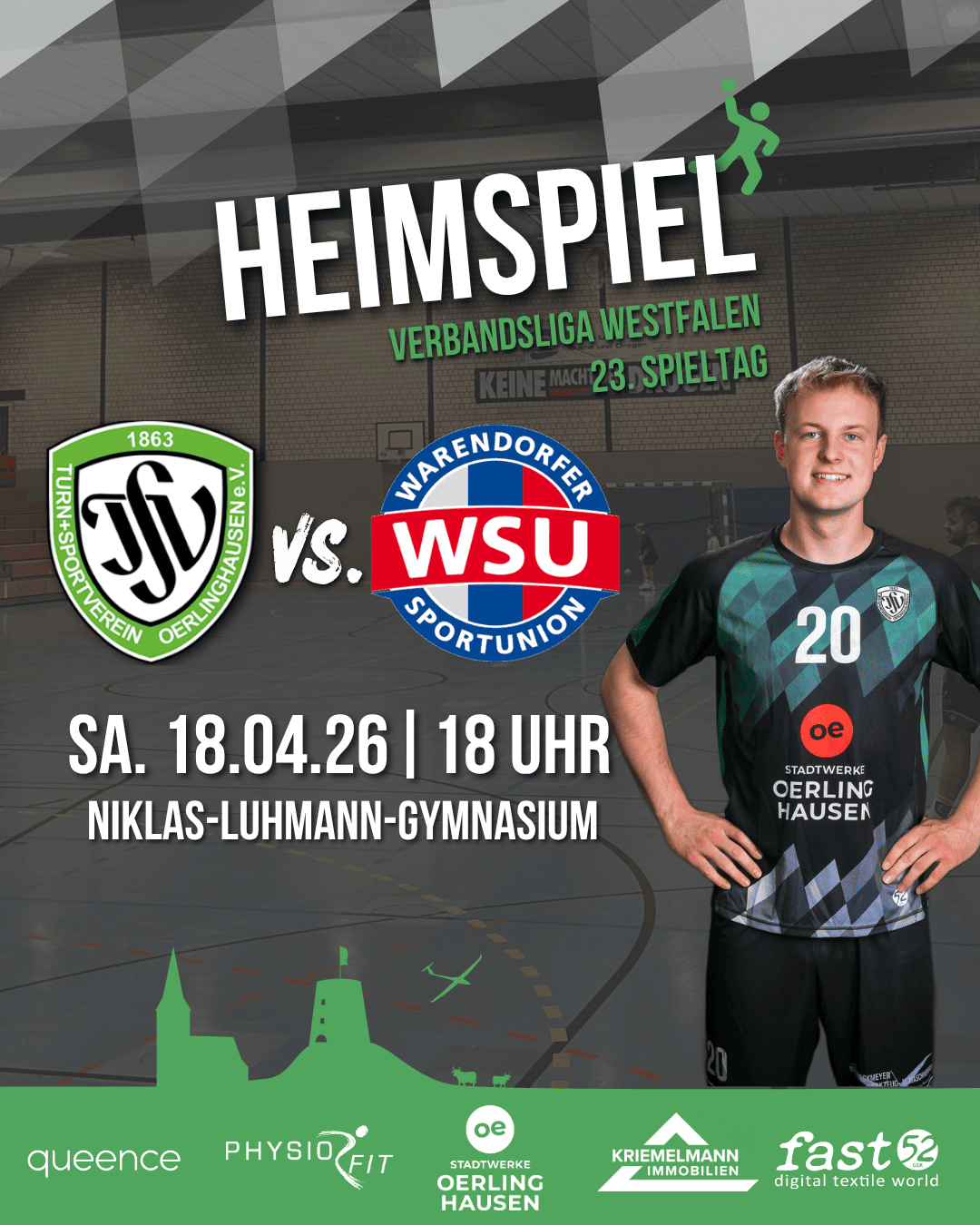 Die 1. Herrenmannschaft des TSV Oerlinghausen empfängt am Samstag, dem 18. April 2026, um 18 Uhr im Schulzentrum Oerlinghausen (NLG) die Warendorfer SU zum richtungsweisenden Abstiegsduell des 23. Spieltags. Die Ausgangslage ist klar: Die Warendorfer belegen mit 12:32 Punkten den vorletzten Tabellenplatz und werden alles geben, um aus Oerlinghausen etwas mitzunehmen. Die Tönsbergsieben stehen auf